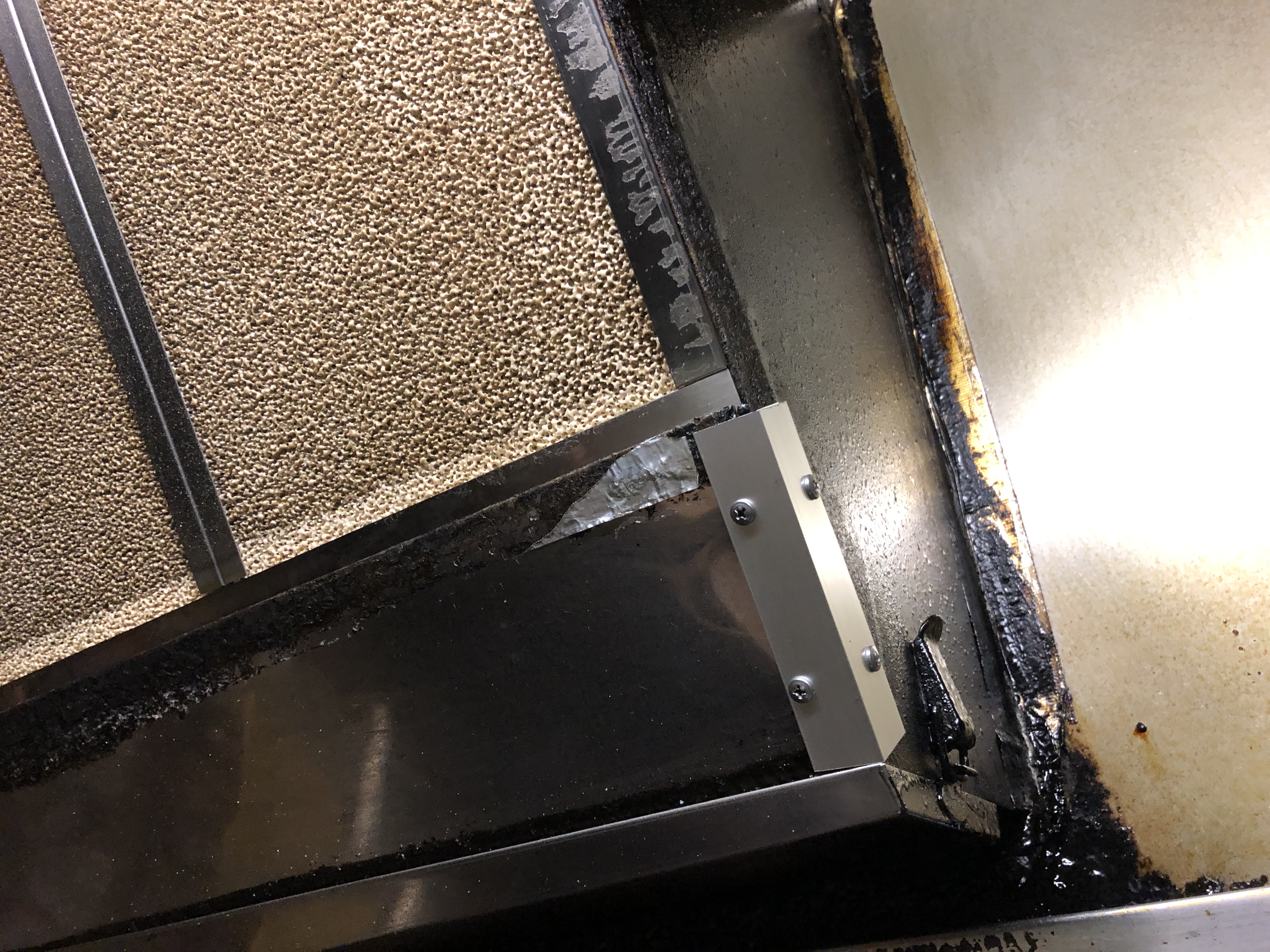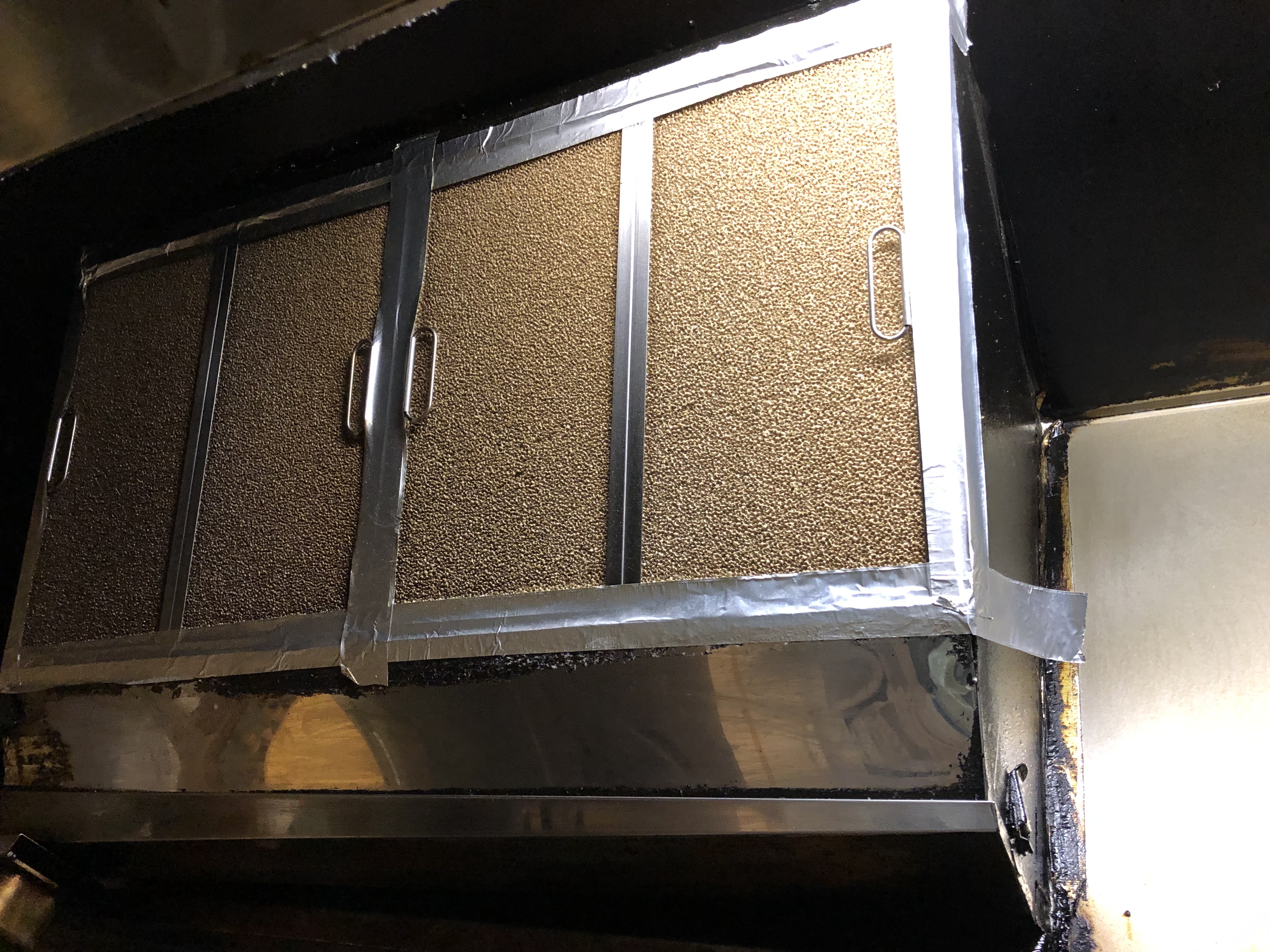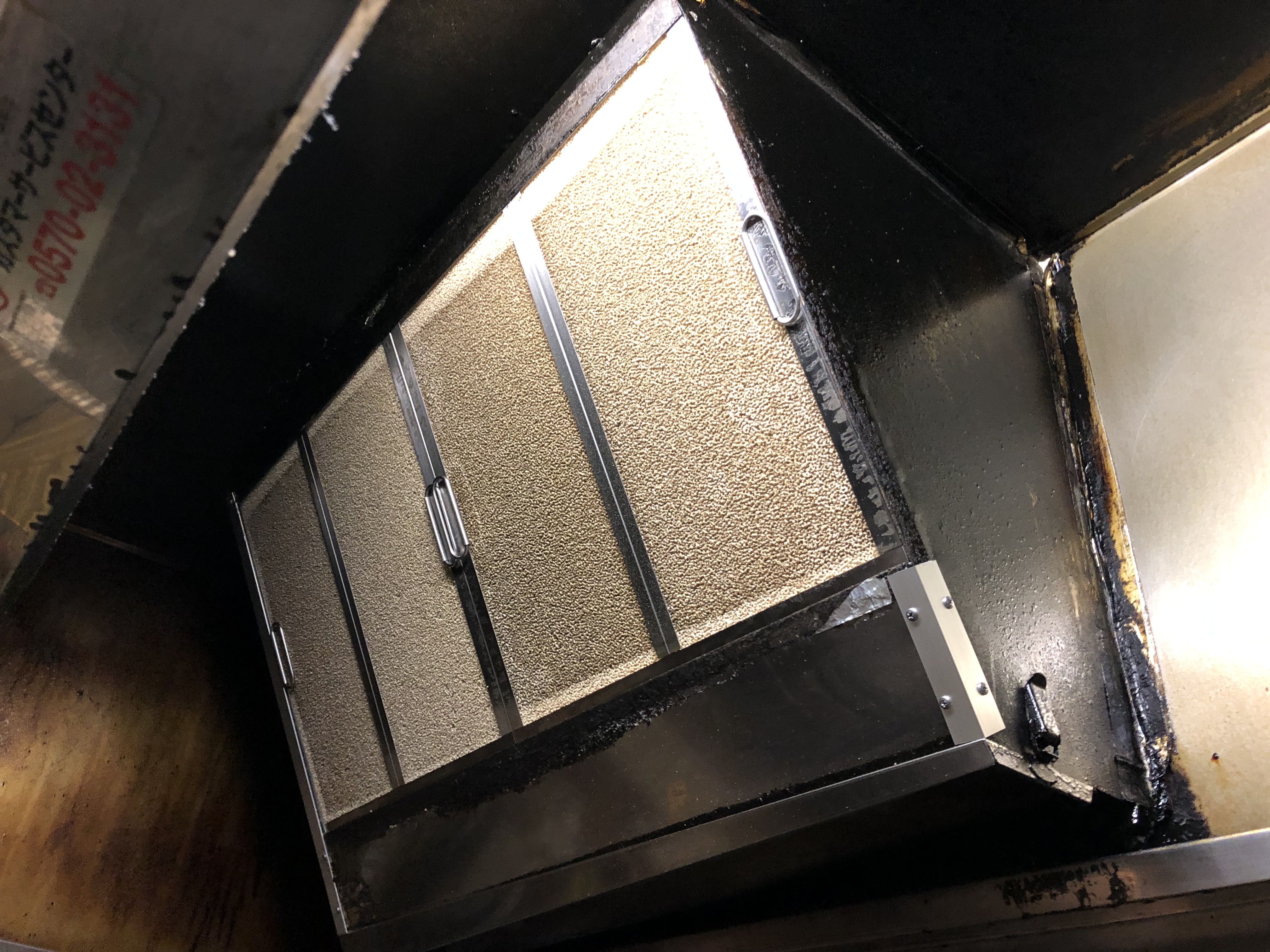 厨房内の換気扇カバーの劣化によりフィルターが外れて落下の恐れがあるとの事で、