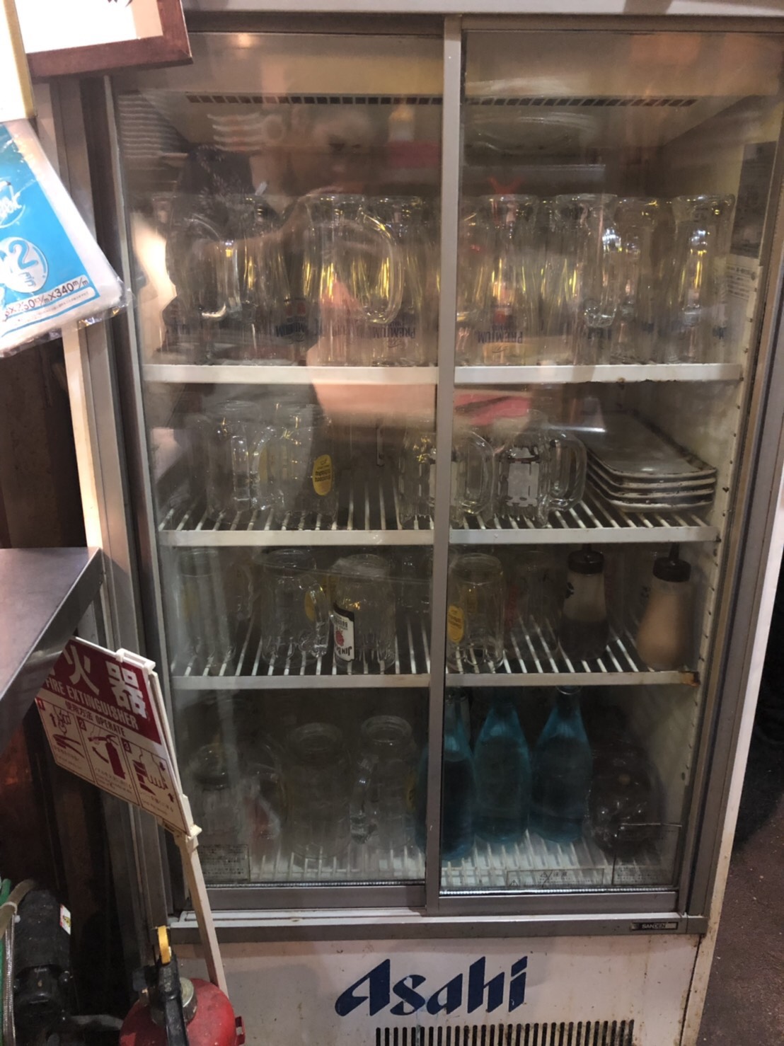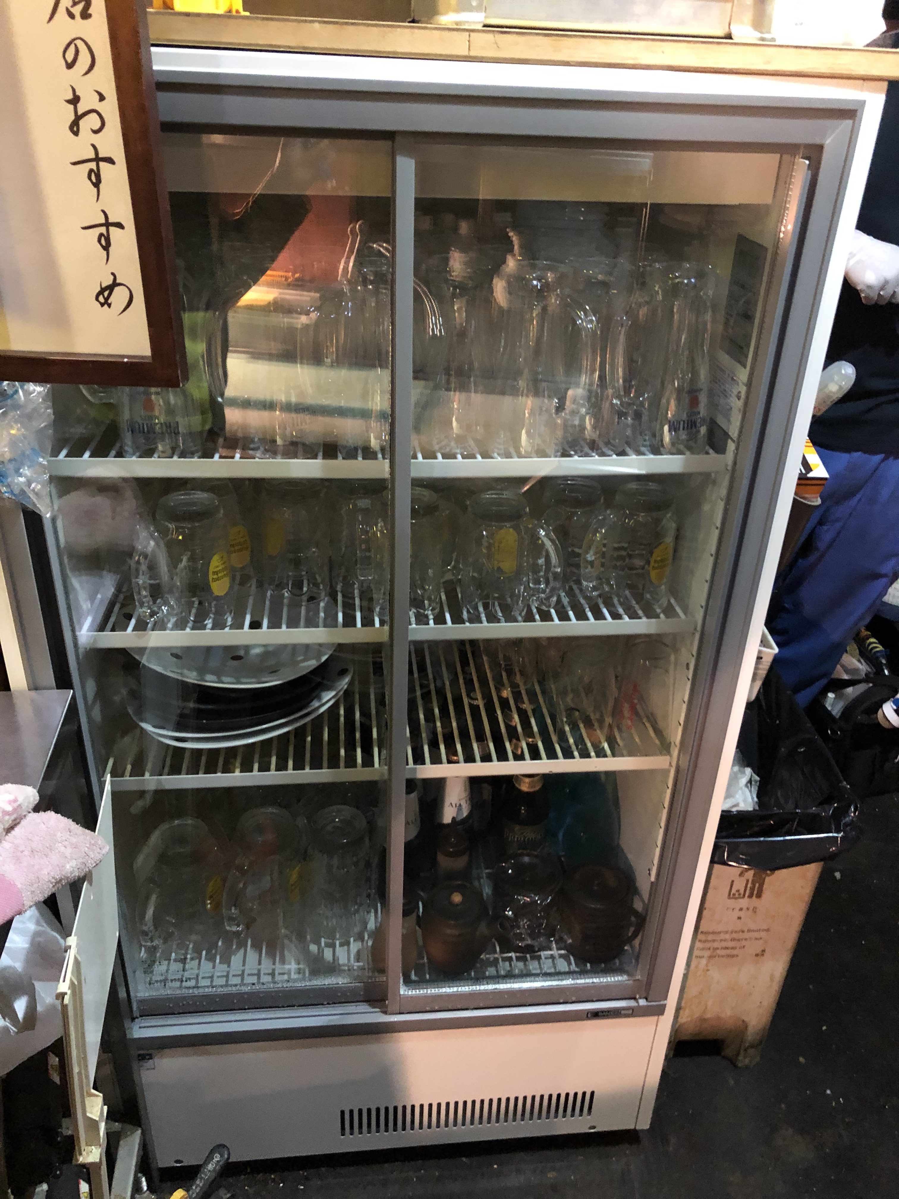 新品の冷蔵ショーケースを設置して庫内の冷え具合いを確認後、さっそく本日ご来店いただくお客様にキンキンに冷えたドリンクを提供できるようにグラス類を投入。