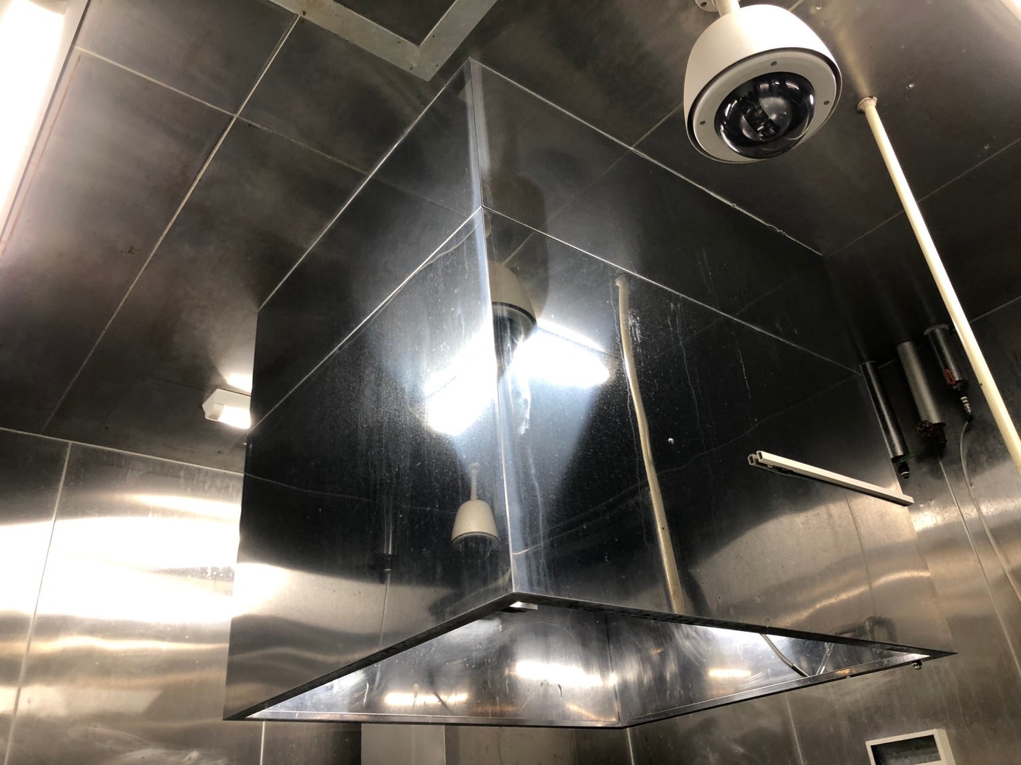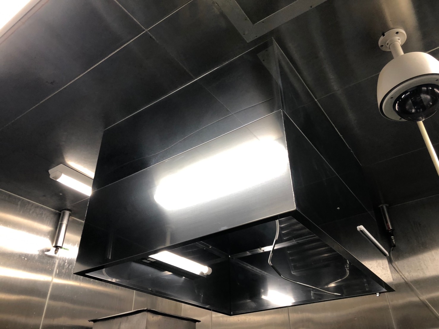 今回は、食品製造工場の厨房内で蒸気を吸い込む活躍をしている、フードの取替にやってまいりました。
