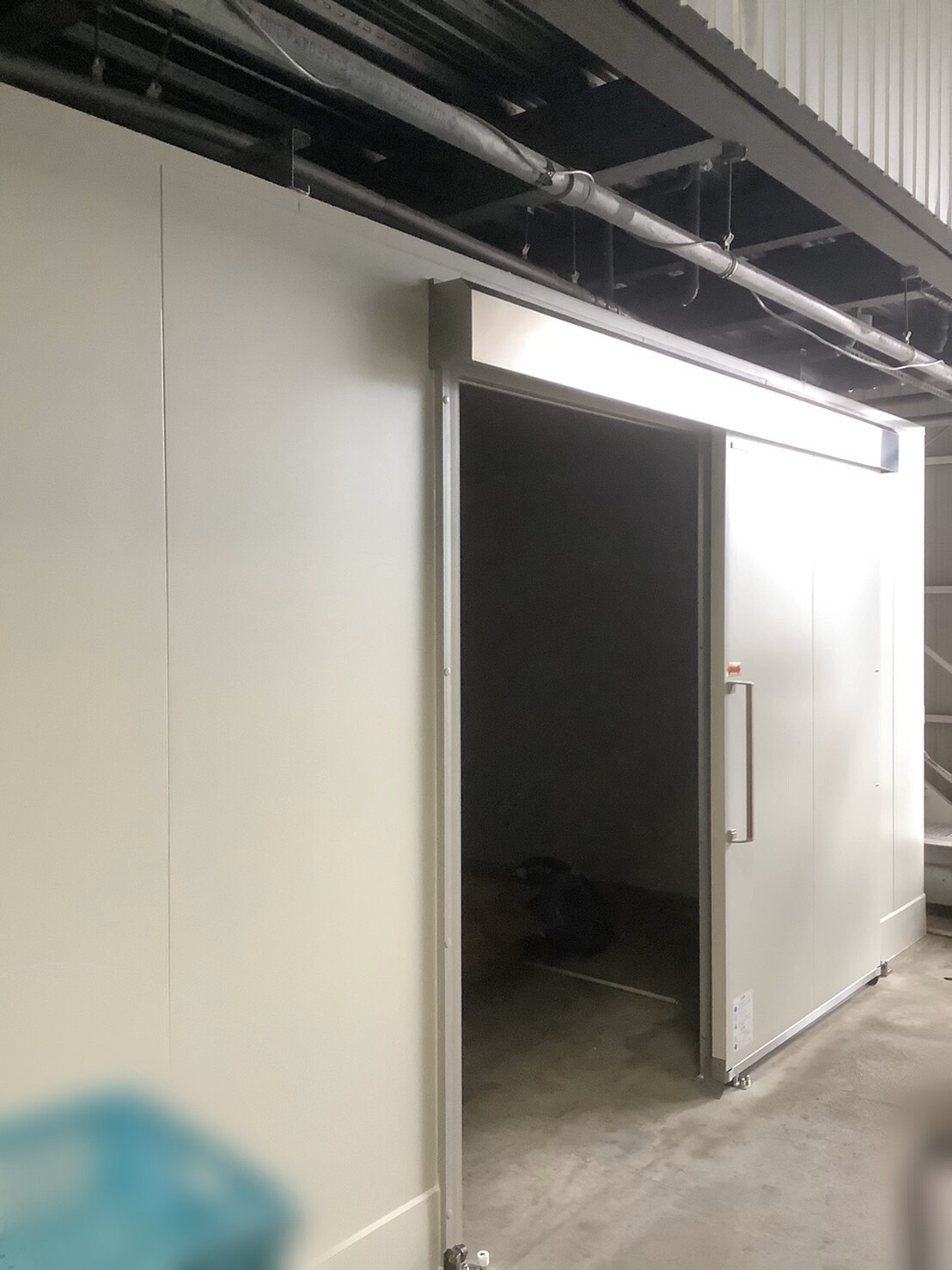 倉庫内に設置されているプレハブ冷凍庫2台、冷蔵庫1台の(旧⇒新)解体からの設置にやってまいりました。