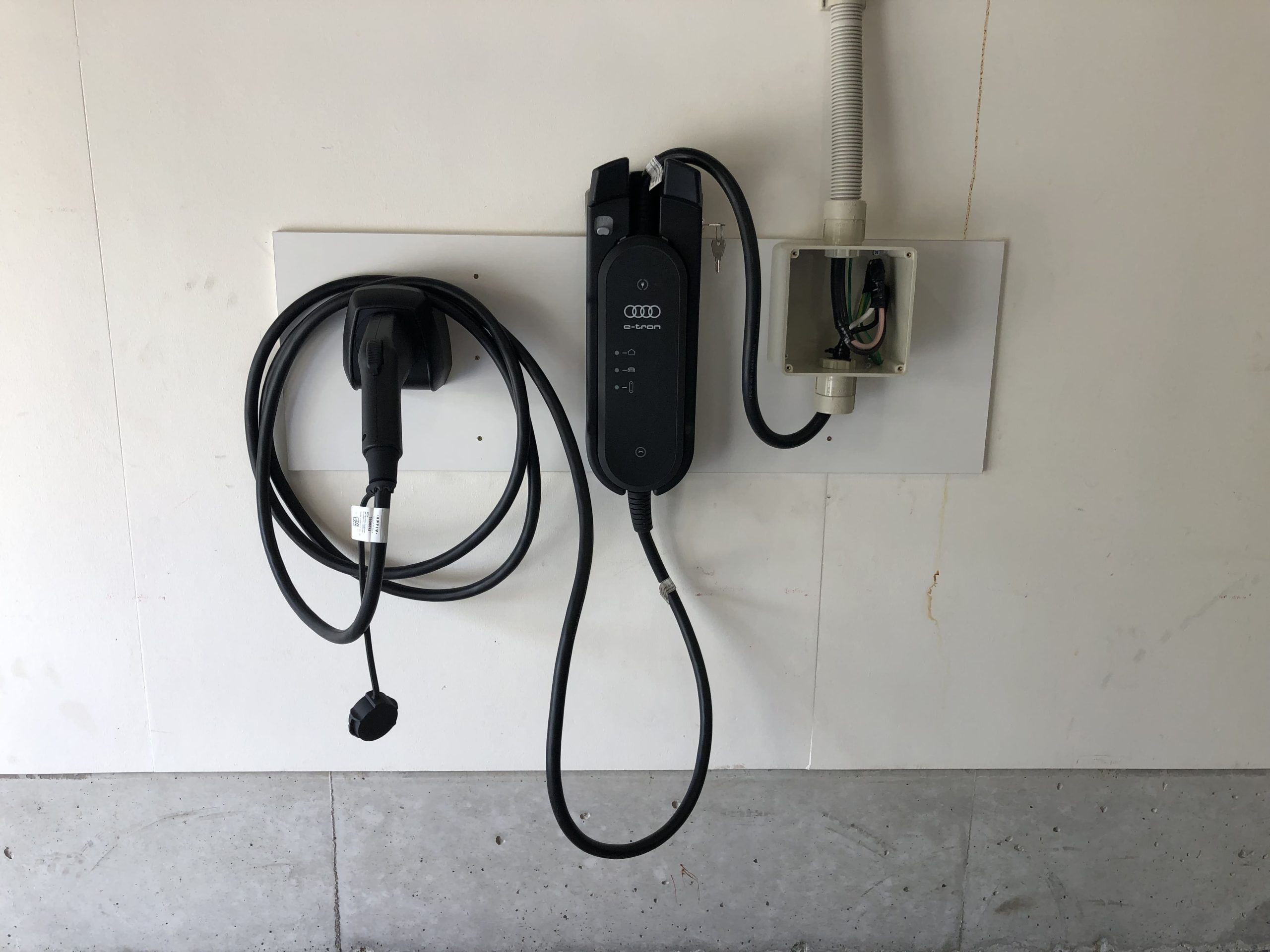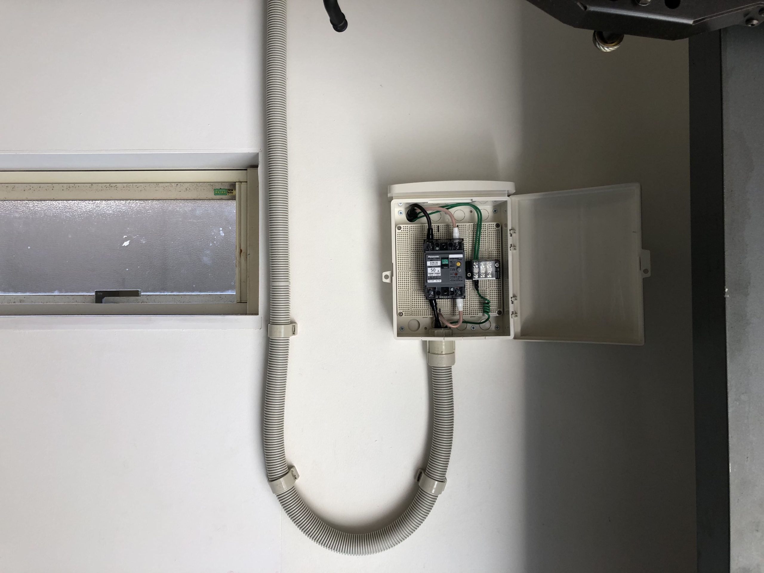 ブレーカーを取付け、充電設備を取付け、工事完了です。